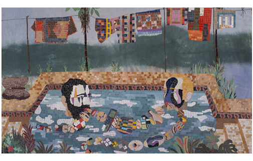 Criollos en la piscina. Mosaico.